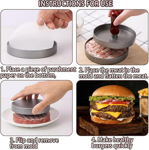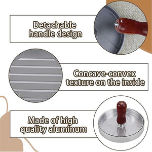 حضّري برجر متساوي ومضغوط بسهولة مع مكبس البرجر المصنوع من سبائك الألومنيوم عالية الجودة، مثالي للاستخدام المنزلي والمطاعم وحفلات الشواء.