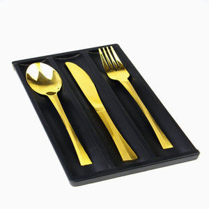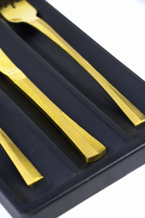 مجموعة أدوات المائدة الذهبية أرشيا (128 قطعة) (علبة خشبية)