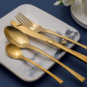 استمتع بتجربة طعام فاخرة مع طقم أدوات المائدة الذهبي الفاخر من أرشيا، المكون من 128 قطعة. تجمع هذه المجموعة الرائعة بين السحر الملكي والحرفية الفائقة، مما يجعلها مثالاً للفخامة، وترتقي بتجهيزات مائدتك إلى آفاق جديدة. حول هذا المنتج: