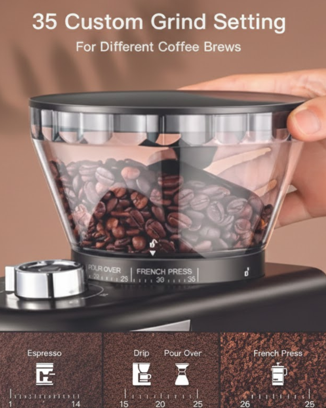 خيارات طحن متعددة لتلبية احتياجات التحضير المختلفة
