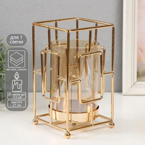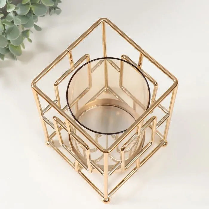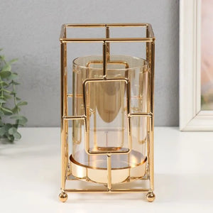 شمعدان معدني بزجاج كهرماني – تصميم هندسي عصري