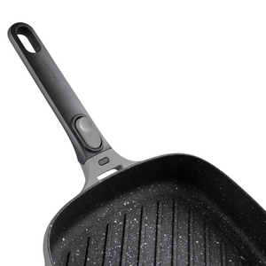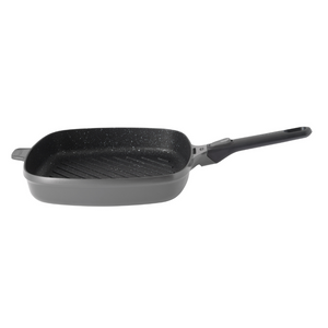 مقلاة شواء مربعة بمقبض قابل للفصل، رمادية اللون، 28 سم