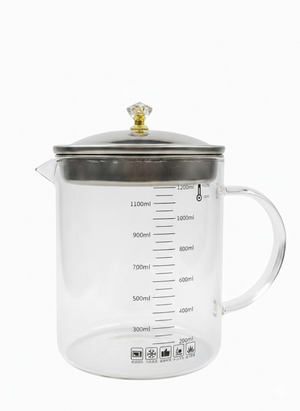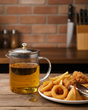 1.4 L Pyrex oil dispenser, perfect for safely and neatly storing oil in the kitchen. Made from durable, break-resistant glass with a secure lid to prevent leaks. Easy to use, eco-friendly, and preserves the quality and taste of the oil for longer.