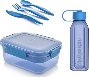 1.6L Lunch Box, 650ml Water Bottle & 3pc. Cutlery Set