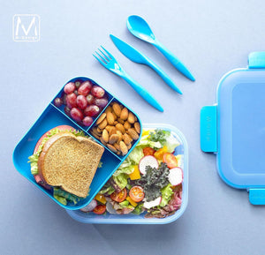 Our 3-piece lunch set is an essential for busy parents and students. It includes a BPA-free and food safe lunch box, a leakproof water bottle, and a 3-piece cutlery set inside the box. With this set, you can rest assured that your meal and drink will stay safe and fresh.