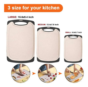 A practical 3-piece cutting board set designed to make food preparation easier and more organized. Made from high-quality BPA-free plastic that is durable and safe for everyday kitchen use.