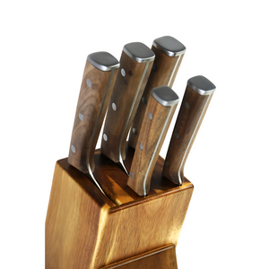 Storage Solution: The set comes with a stylish wooden holder that provides safe and organized storage for each knife, keeping your kitchen countertop tidy and adding a natural, elegant touch.