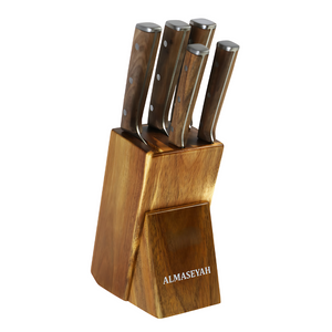 ALMASEYAH 6-Piece Kitchen Knife Set with Bamboo Block,brown