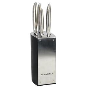 ALMASEYAH 6-Piece Kitchen Knife Set with Stylish Block,silver
