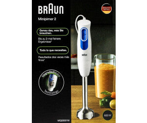Blend, whisk, and mix effortlessly with the Braun MultiQuick 2 Hand Blender MQ20.001MWH. Featuring a 600W motor, two-speed control, and the EasyTwist System, this hand blender makes cooking fast, simple, and versatile. All parts in contact with food are BPA-free, ensuring safe use.