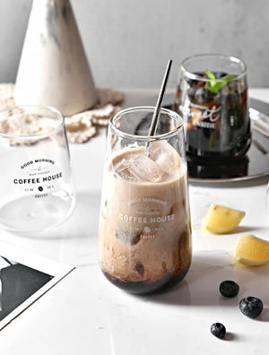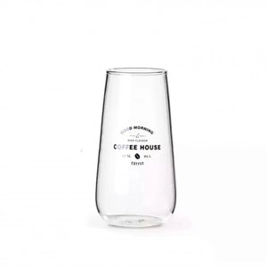 Transparent glass mug printed with “Coffee House”, available in 400ml size. Perfect for coffee and hot or cold drinks, practical and stylish for daily use.