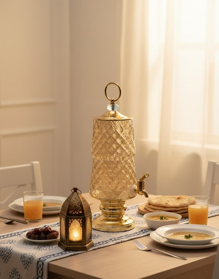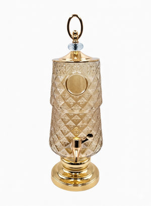 Golden Glass Drinks Dispenser with Circular Stand & Stainless Steel Tap
