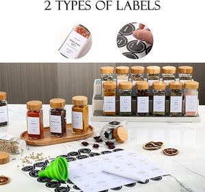 Organize your kitchen in style with this premium 24-piece glass spice jar set. Each square jar comes with an airtight bamboo lid to preserve freshness and prevent spills. The set includes a funnel, pre-printed and blank labels, and a marker, making it easy to fill and customize your spice collection.