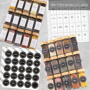 Complete 24-Piece Glass Spice Jar Set with Bamboo Lids