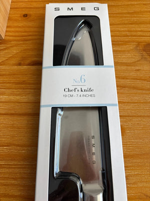 The SMEG No.6 Chef’s Knife – 19 cm is made from high-quality German stainless steel, making it an essential tool for any kitchen.