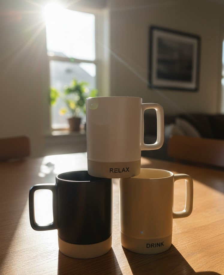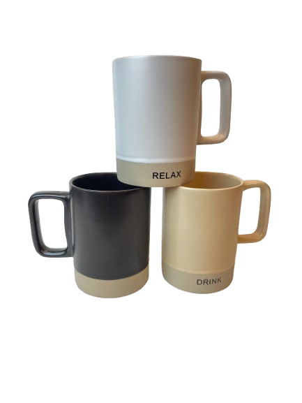 A modern minimalist ceramic mug with a comfortable square handle, available in multiple colors to suit every taste.