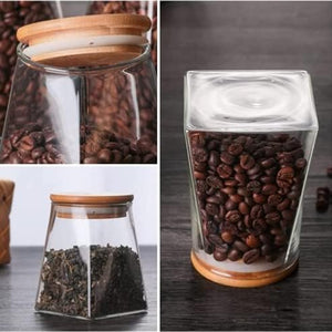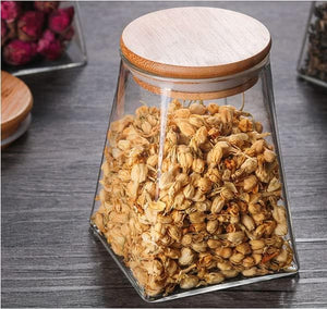 Store your favorite spices and ingredients in style with this 350ml pyramid* glass jar. Equipped with an airtight bamboo lid to keep contents fresh and prevent spills. The pyramid design saves space and adds a modern touch to your kitchen.