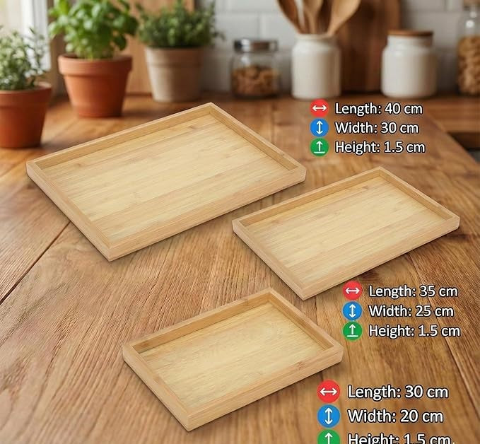 Rectangular Wooden Serving Tray Set – 3 Different Sizes