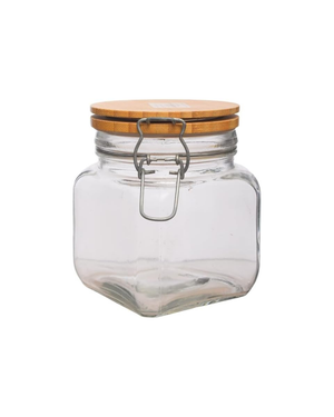 Store spices, snacks, or dry ingredients in style with this glass jar featuring a wooden press lid for a secure closure. The transparent glass body allows easy visibility of the contents, keeping them fresh. Perfect for the kitchen, dining areas, or decorative storage.