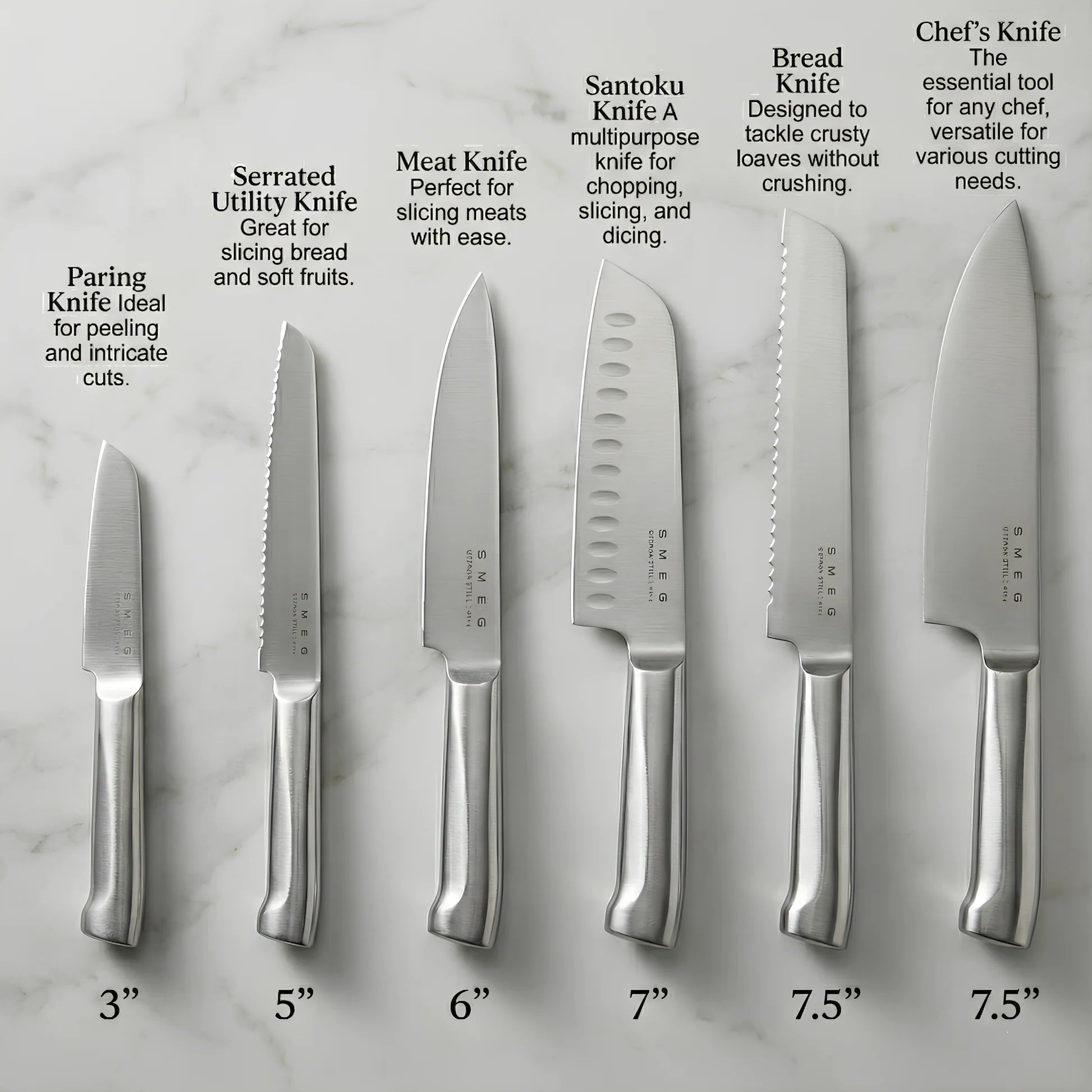 The SMEG 6-Piece Knife Set is an essential addition to any modern kitchen, combining premium quality with elegant Italian design.