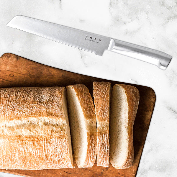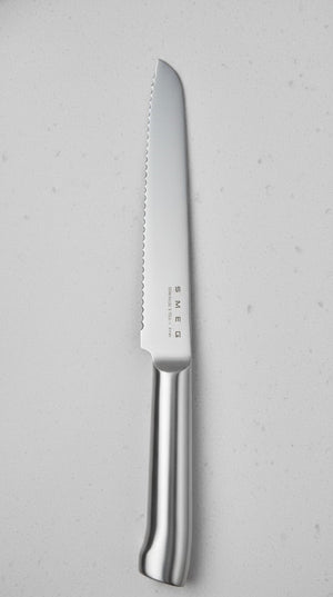 The SMEG Bread Knife is designed to cut bread and baked goods easily without crushing.