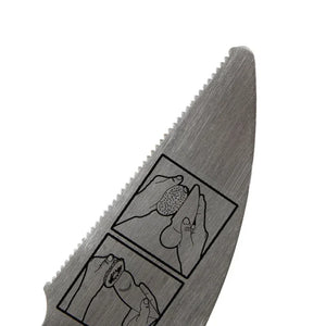 Features a serrated edge for slicing and a built-in spoon for removing the pulp without waste.