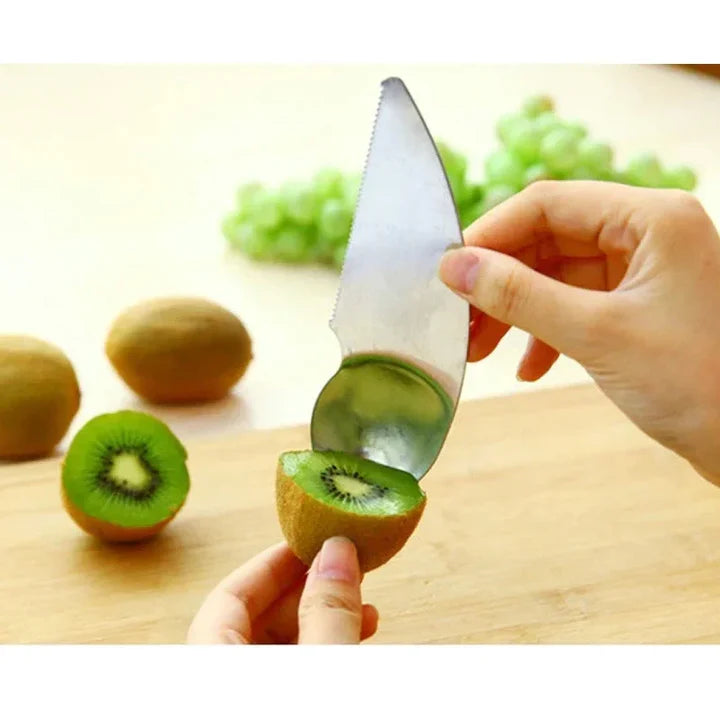 Practical 2-in-1 tool for cutting and scooping kiwi fruit with ease.